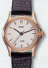 Belair Fashion Avenue Collection. Gold plated stainless steel watch with quartz movement, white dial and leather watch band