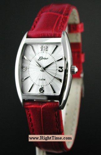 Belair ladies wrist watch from Belair Multi-Strap Collection. Swiss quartz movement, stainless steel case, Guilloche textured silver dial, 5 easy-to-change leather straps. Comes in elegant wooden box.