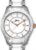 Belair watch model A5020TR-WHT. Small stainless steel and white ceramic case and bracelet. Quartz movement, sapphire crystal, white color dial with diamond and rose gold tone markers. Water resistant to 50 meters