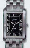 Belair watch from Belair Royal Star Collection. Curved stainless steel case and bracelet with black dial and Roman markers
