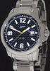 Belair stainless steel diver wrist watch from Belair Seapearl Quartzline Collection. Swiss quartz movement, sapphire crystal with date magnifier bubble, black carbon fiber dial with luminous hands and Arabic numerals, stainless steel watch band and center opening clasp with spring release. 200m water resistant.