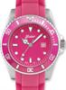 Belair stainless steel wrist watch. Quartz movement, date calendar, pink color dial with luminous hands and markers, sapphire crystal, pink rubber band. 100m water resistance