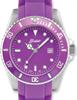 Belair stainless steel wrist watch. Quartz movement, date calendar, purple color dial with luminous hands and markers, sapphire crystal, purple rubber band. 100m water resistance
