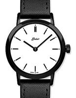 Belair Ladies`s wrist watch model A4221BK/S-WT/BK. Quartz movement, black IP plated steel round 30mm case, white color dial, sapphire crystal, and black leather band.