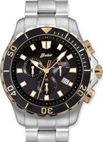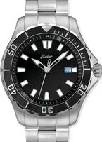Belair stainless steel diver wrist watch. Swiss quartz movement, sapphire crystal, black 0-60 bezel, black color dial with luminous hands and markers, stainless steel watch band. 200m water resistant.