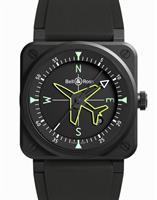 Bell & Ross BR 03 Black Ceramic watch model BR03A-D-BL-CE/SRB powered by Swiss automatic movement. Water resistant to 300 meters. Black dial with luminous indexes. Comes in a square black ceramic case on a black rubber band.