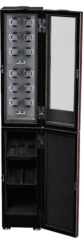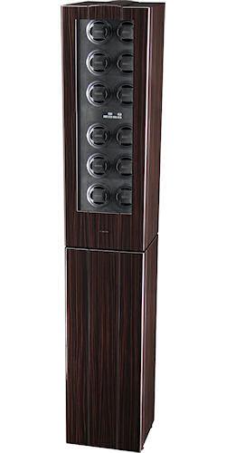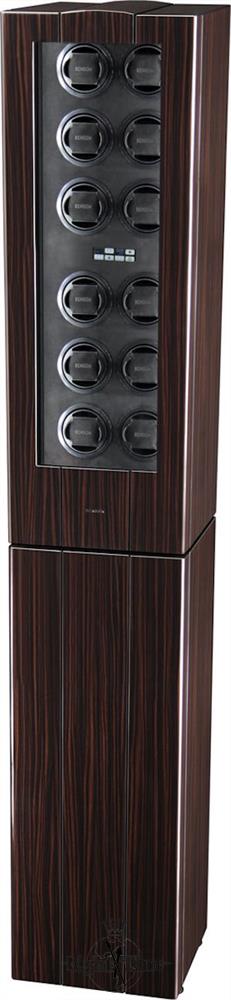 Benson Black Series Tower watch winder model 12.17.MA. Stylish design. High quality finish. Newest technique. Macassar color case. Led lighting. Touch screen. Suitable for 12 watches with a storage for 6 watches.