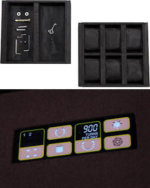 TPD: 600, 900, 1200, 1500, 1800, 2100. Comes with soft close cover, special soft velvet inside, USB port, Adapter (EU, EU or USA), Certificate.