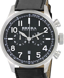 Brera Orology Classico model BRCLC4601. Quartz chronograph movement. Stainless steel case. Black dial with date calendar. Black leather band.