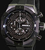 Super Sportivo collection presenting quartz Chronograph in all black stainless steel case with black multilayer carbon fiber dial and black silicone rubber strap.