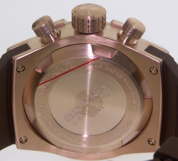 Super Sportivo collection presenting quartz Chronograph in rose gold finish stainless steel case with brown multilayer dial and brown silicone rubber strap. Very powerful and unusual color combination