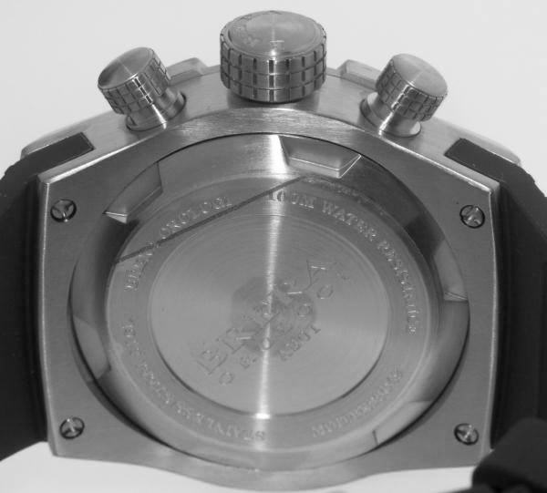 Super Sportivo collection presenting quartz Chronograph in stainless steel case with black multilayer dial and black silicone rubber strap.