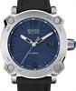 Bulova AccuSwiss stainless steel automatic watch from AccuSwiss Percheron Collection. Blue color dial with date calendar. Round case with sapphire crystal and black rubber strap.