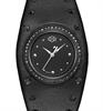 Bulova Harley-Davidson Watch model 78L128. Quartz movement. Black IP-plated stainless steel case with black leather cuff strap. 48 hand-set jet-black Crystals from Swarovski set on case