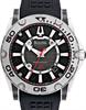 Bulova Precisionist Champlain Collection model 96B155 operated by Citizen most precise quarts movement with continuously sweeping second hand. Black rubber band. Black carbon fiber dial and silver 24-hours inner ring with date and luminous hands. Water resistant to 300 meters