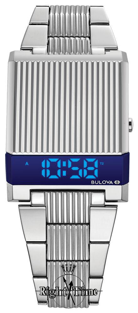 Bulova Archive Series Computron watch. Model 96C139. Quartz digital movement. Stainless steel case and bracelet.