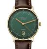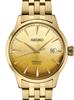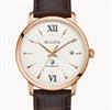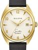 Bulova Frank Sinatra "Fly Me To The Moon" Collection. Model 97B196. Powered by Miyota 8215 automatic movement. Gold plated stainless steel case with leather band, silver tone textured, open case back.