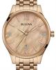 Bulova Diamonds collection. Watch model 97P113. Quartz movement. Rose gold plated stainless steel case, dial and bracelet. Roman and diamond markers