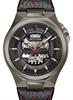 Bulova Maquina Automatic watch model 98A237. Grey plated steel case. Black skeletonized dial with skull. Black leather band with red color stitching. Water resistant to 100 meters.