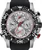 Date calendar, window display. 12 hr, 60 min, 60 sec, registers chronograph. 1/1000 second chronopgraph. Continuously sweeping second hand.