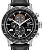 Date calendar, window display. 30 min, 60 sec registers chronograph.