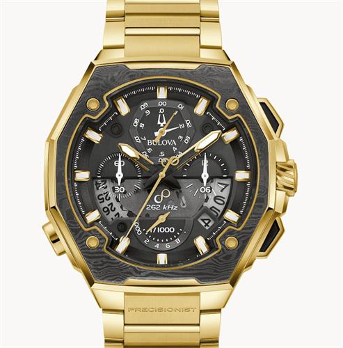 Precisionist Golden Black Dial 98b429 - Bulova Precisionist wrist watch