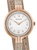 Bulova Classic Rhapsody watch. Model 98R279. Quartz movement. Stainless steel rose gold plated round case with diamond bezel. White dial. Rose gold tone leather double wrap strap with lizard grain texture.