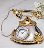 Bulova Antique Telephone Miniature Collectible Clock model B0431. Contrasting gold and silver finish to highlight elegant Rococo design