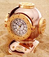 Explore the mysteries of the deep - 19th century style - with this classic divers helmet replica. Authentically toned solid brass case mixes rose and yellow gold finishes, while front mark frames an appropriately nautical-themed dial.