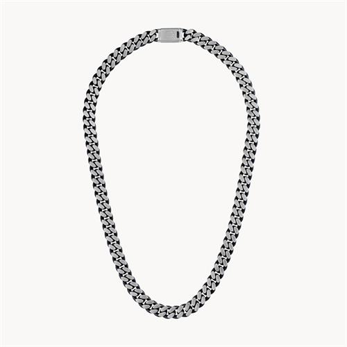 Bulova Classic 10mm Curb Chain Stainless Steel Necklace. Length 24". Brushed stainless steel in a striking blue and steel color combination