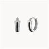 Pair of earrings feature a row of black diamonds totaling 0.15 CTTW embedded in a narrow hoop formed in the shape of Bulova`s signature tuning fork logo. Sterling silver huggie-style earrings sit close to the ear lobes. All of our sterling silver is rhodium plated to give the jewelry a brilliant shine and provide enhanced durability.