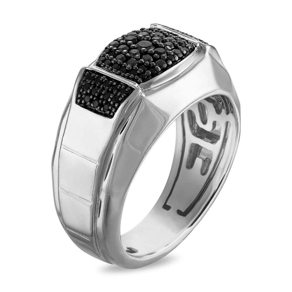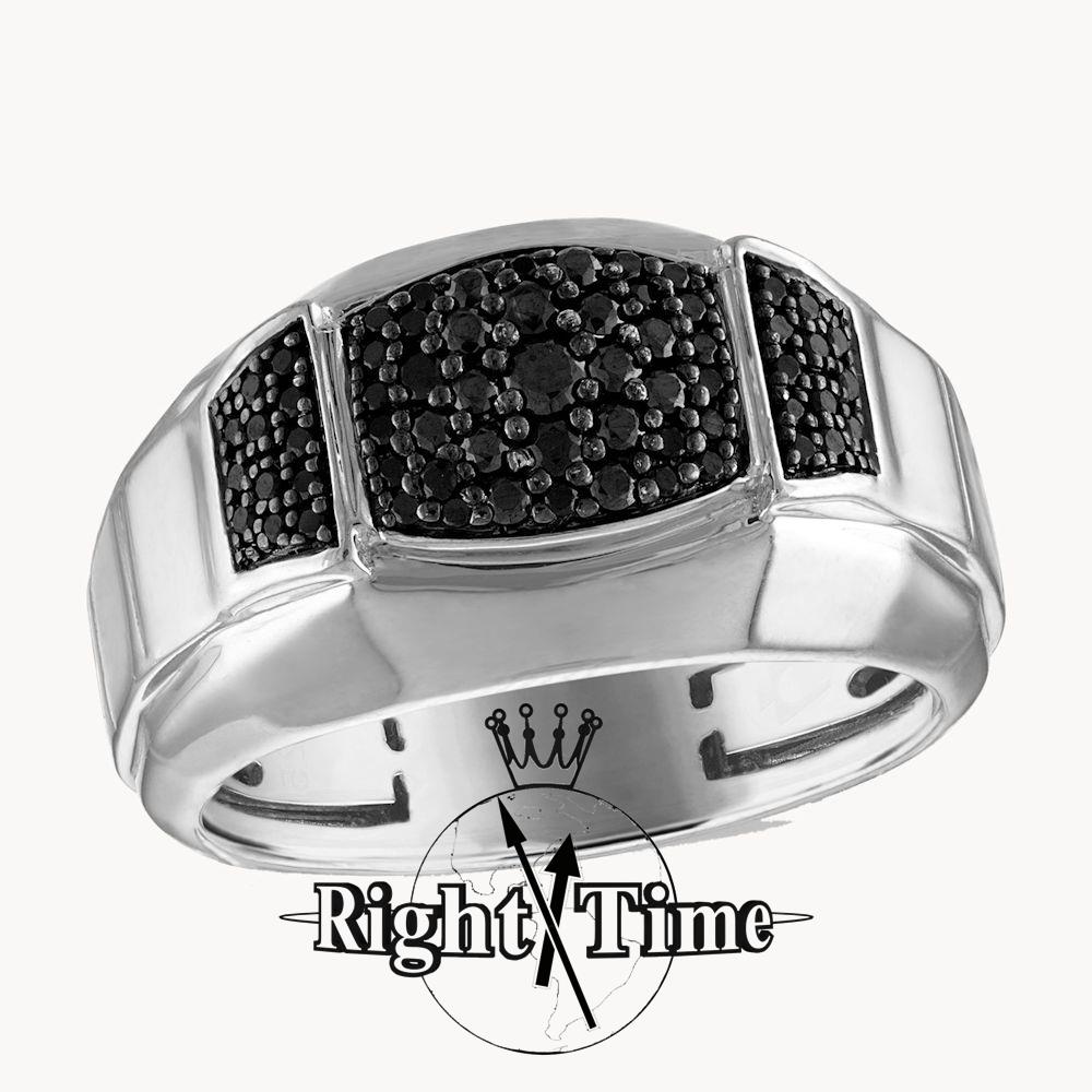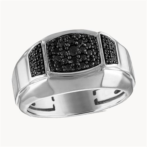 In collaboration with legendary performer Marc Anthony, this piece combines the boldness of his artistry with Bulova`s classically sophisticated design. This pave barrel ring is made of rhodium-plated sterling silver and inlaid with black diamonds totaling 0.50CTTW, and is stamped with Marc Anthony`s signature logo. Size 10.
