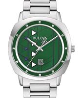 Bulova Hollyhock House quartz watch. Hollyhock House was designed by Frank Lloyd Wright originally as a residence for oil heiress Aline Barnsdall. It located in the East Hollywood neighborhood of Los Angeles, California. Watch comes in stainless steel case with bracelet, and green textured dial with Frank Lloyd Wright theme design.