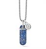 Bulova Classic polished pendant. Made of semi-precious lapis which believed to stimulate self-awareness, creativity and clarity. Comes on a stainless steel link chain with Bulova signature tuning fork charm. Stainless steel chain adjusts from 26" to 28" with extender ring. Pendant measures 1.4 x 0.5 x 0.17 in.