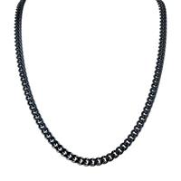 A classic Bulova curb chain of dual-surfaced links modernized in a striking navy blue. A distinctly bold 22" necklace made of 6MM navy blue plated stainless steel combines both polished and brushed finishes. Gunmetal-colored, custom-designed clasp with tongue in the shape of the Bulova signature tuning fork is subtly branded with the Bulova logo.