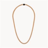 A classic Bulova curb chain of dual-surfaced links modernized in a striking rose color. A distinctly bold 22" necklace made of 6MM rose-tone stainless steel combines both polished and brushed finishes. Gunmetal-colored, custom-designed clasp with tongue in the shape of the Bulova signature tuning fork is subtly branded with the Bulova logo.