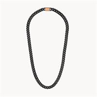 A classic Bulova curb chain of dual-surfaced links modernized in a striking rose color. A distinctly bold 22" necklace made of 6MM rose-tone stainless steel combines both polished and brushed finishes. Gunmetal-colored, custom-designed clasp with tongue in the shape of the Bulova signature tuning fork is subtly branded with the Latin GRAMMY logo.