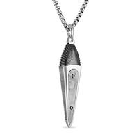 Capture the spirited rhythm of Marc Anthony`s iconic music with the all-new Marc Anthony jewelry collection by Bulova. Crafted in collaboration with the legendary singer to create the perfect layering piece. The dagger-shaped amulet in sterling silver is topped with black antiqued rhodium. The pendant features an inlay of eye-catching Damascus steel, a combination of multiple steels layered and forged together several times to reveal rings and lines of varying steel-like colors. The rounded box link chain necklace in rhodium-plated sterling silver adjusts from 24" to 26" with an extender ring and pear-shaped lobster clasp. Pendant measures 56MM L x 14MM W and is stamped with Marc Anthony`s signature logo.