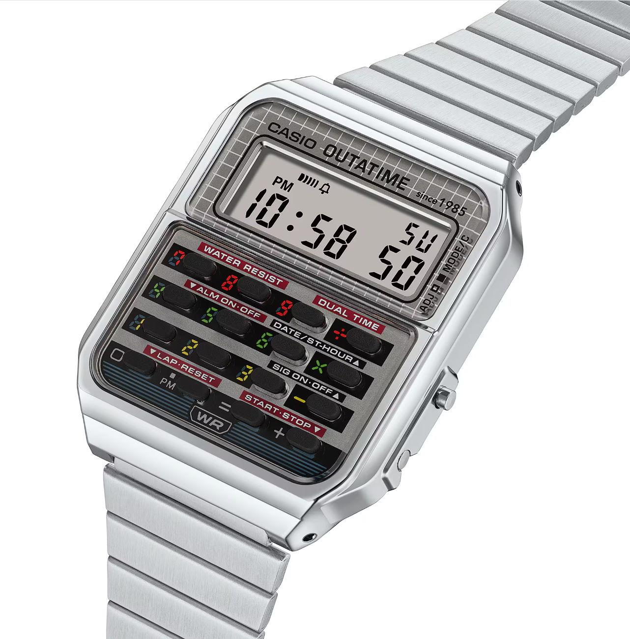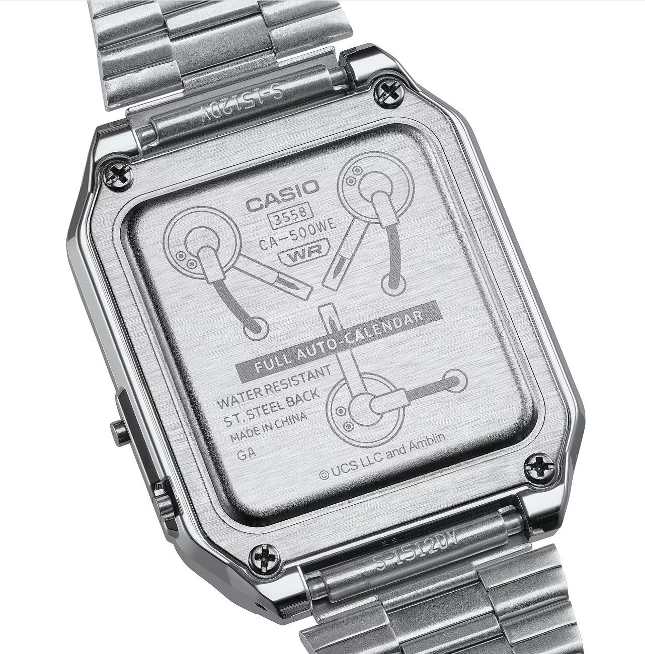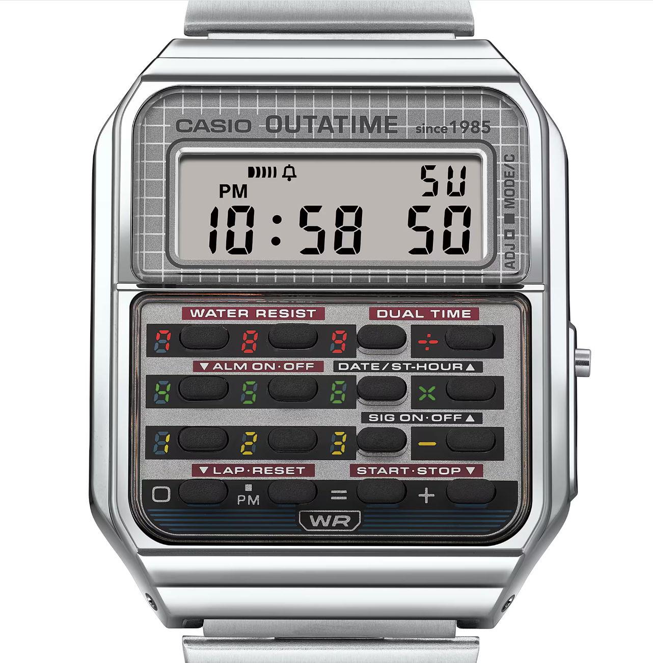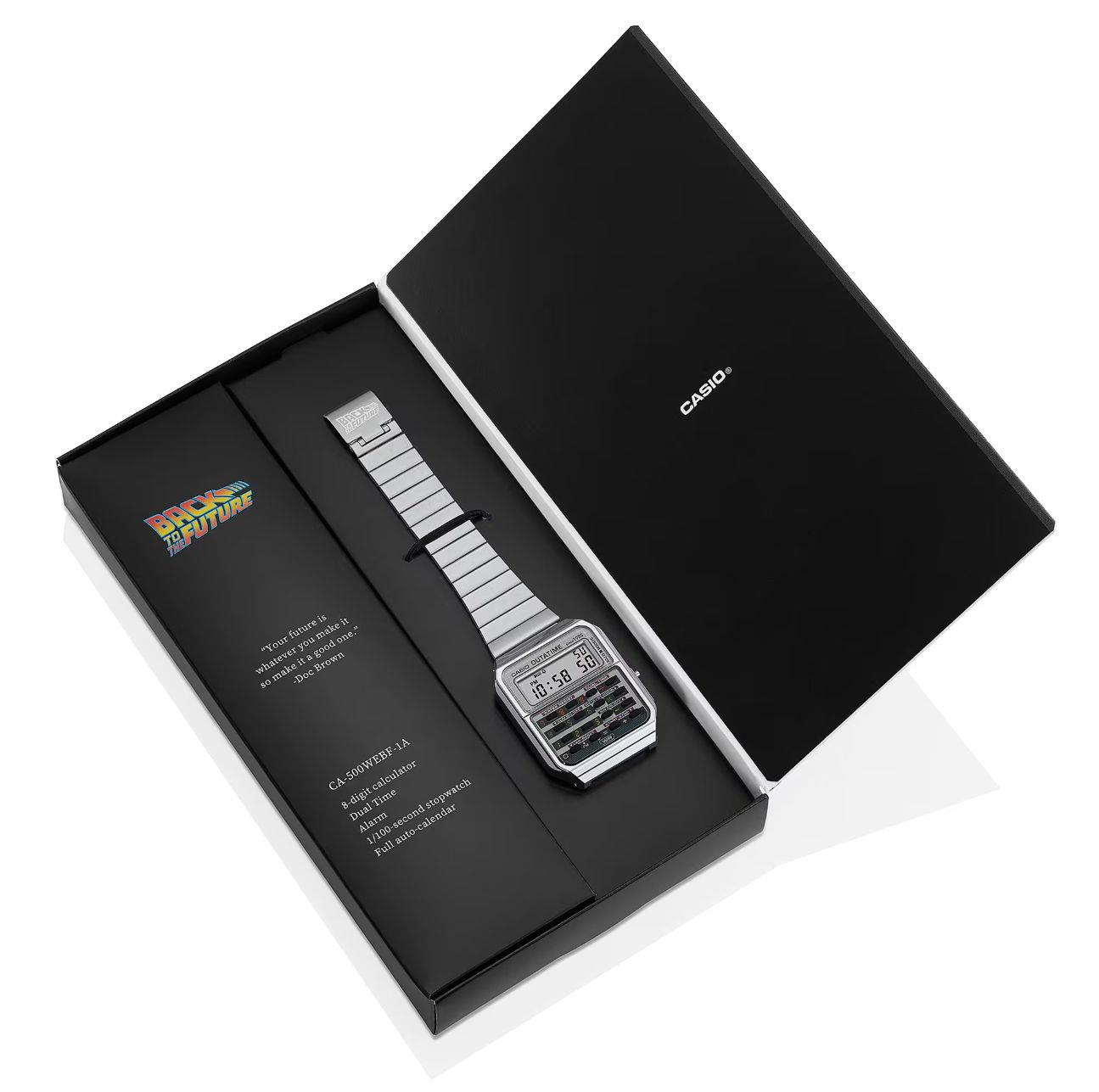 Casio Vintage Back to the Future collaboration model CA500WEBF-1A. 2025 marks the 40th anniversary of the release of Back to the Future, Casio Vintage helps celebrate with a very special watch that embodies this classic futuristic adventure. The watch comes in special packaging designed to look like a vintage videotape, capturing the world of the film — a very special item worthy of any collection.