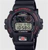 Casio G-Shock 6900 series model DW-6900TR-1. Quartz digital movement. Black color resin case and band. Luminous dial with black digital display. Functions include stopwatch, timer, alarm, and backlight.