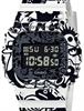 Casio G-Shock model DW5600GU-7. Resin case and band with a printed pattern consisting of 18 character drawings from the engraved case backs of current and past Master of G models. Digital display. Water resistant to 200 meters.