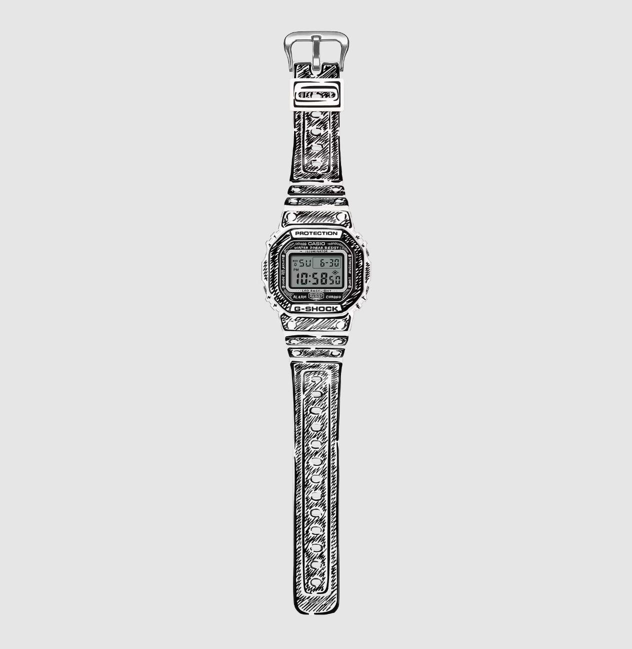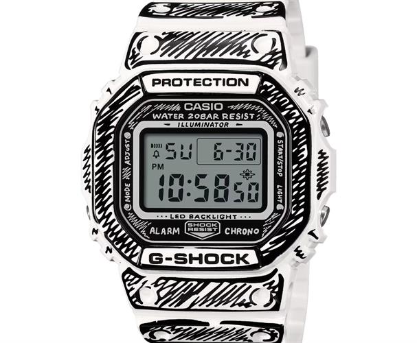 G-Shock DW6900 Series by Casio. Collaboration with artist and designer, Joshua Vides. Joshua Vides` signature monochrome, comic-style graphics are applied across the watch, from the dial to the bezel and band.