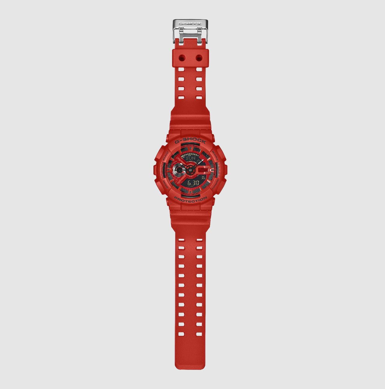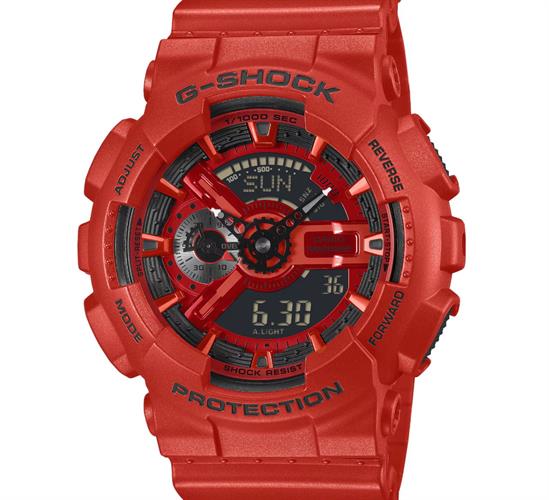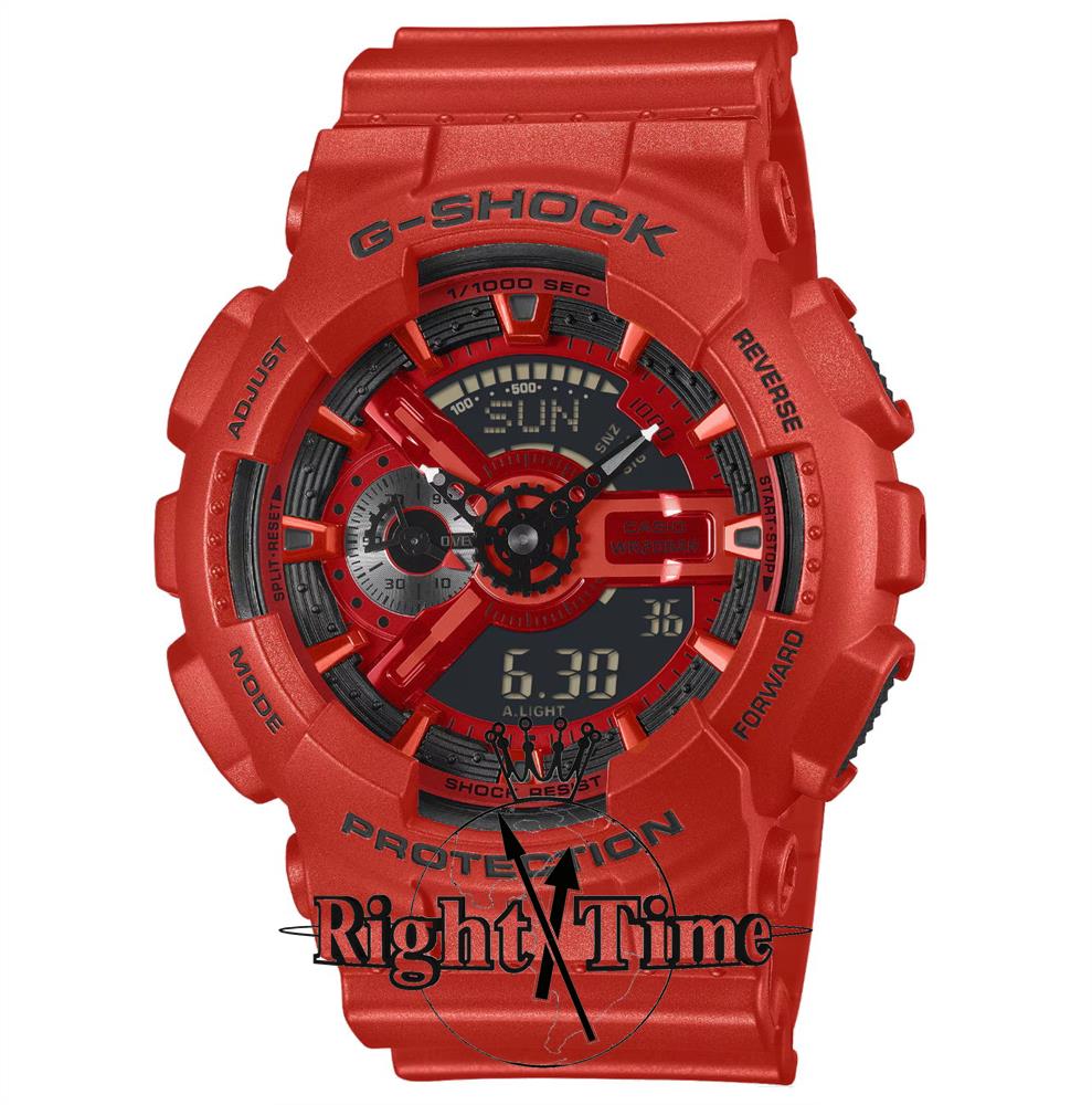 G-Shock G-Shock GA-110RRB-4A by Casio. Red red case and band. Black dial with Ana-Digital display. Anti-Magnetic Structure. 1/1000 Second Stopwatch w/Speed Indicator. 200 meters water resistant. by Casio. Red case and band. Black dial with Ana-Digital display. Anti-Magnetic Structure. 1/1000 Second Stopwatch w/Speed Indicator. 200 meters water resistant.
