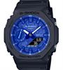 Casio G-Shock GA2100BP-1A. Dubbed the "CasiOak" due to the octagonal bezels resemblance to the famous "Royal Oak" from Audemars Piguet. Black high-strength resin case and band, reinforced with carbon fibers for extra toughness. Blue paisley color scheme. A mere 11.8 mm thick, which is the thinnest among G-SHOCK combination models. Features include stopwatch, count-down timer, world time, and a built-in LED. Water resistant to 200 meters.