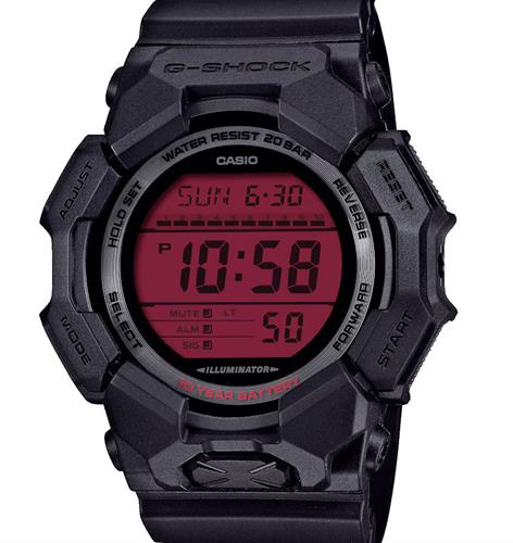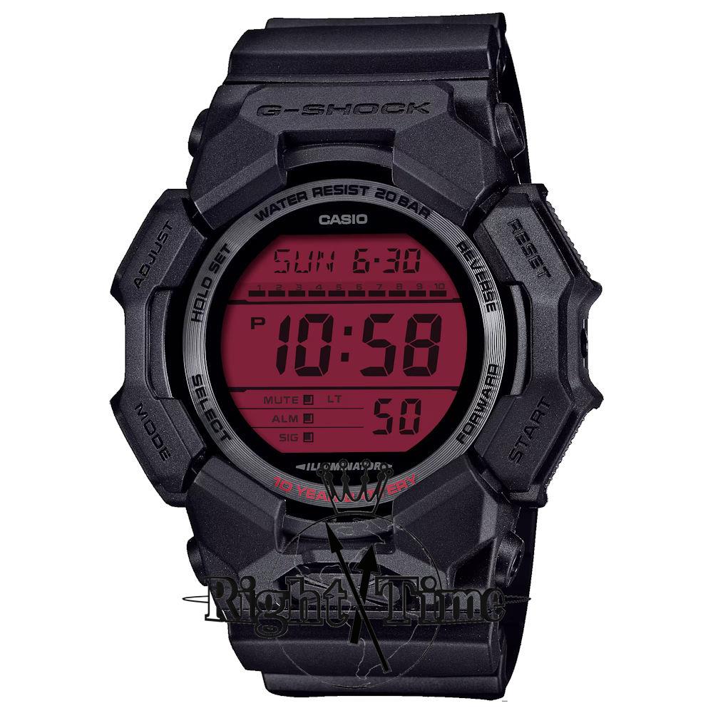 G-Shock GD-010BBR-1 by Casio. Black case with Digital Red dial. 200 meters water resistant.