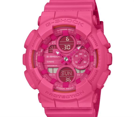 G-Shock model GMAS145PK-4A. Reflects the Casio commitment to pink ribbon campaigns, which raise awareness of the importance of early detection, diagnosis, and treatment of breast cancer.