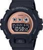 G-Shock S Series model GMD-S6900MC-3. EL Backlight with Afterglow, 3 multi-function alarms, 1/100th stopwatch, countdown timer, 12/24-hour time formats and 48-city world time. Shock Resistant. 200 Meter Water Resistant. Military green case and band, rose gold tone dial