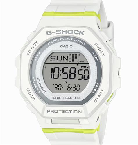 G-Shock model GMDB300SC-7. White case with yellow color accents. Sports-oriented G-SHOCK with step tracker. Handy support for your healthy, active lifestyle.