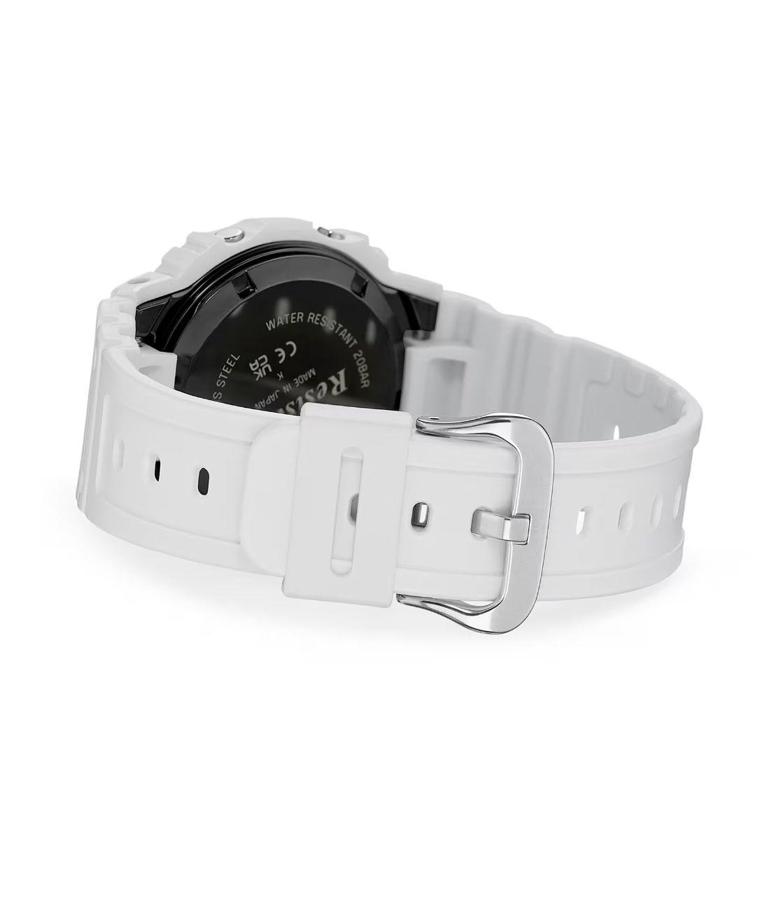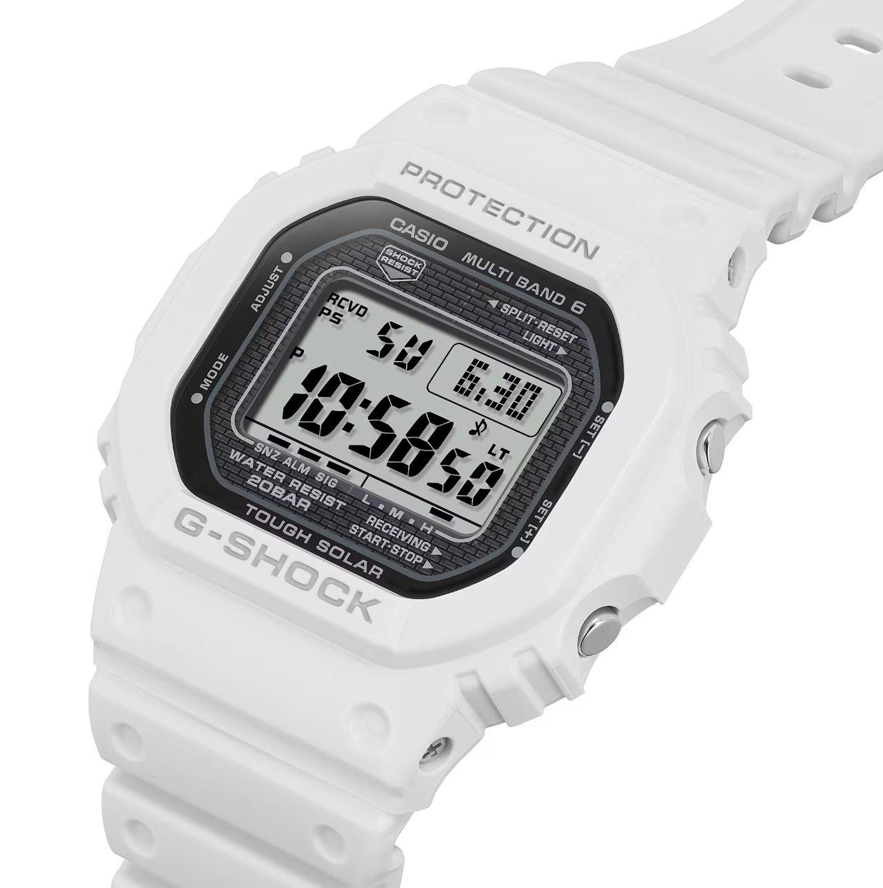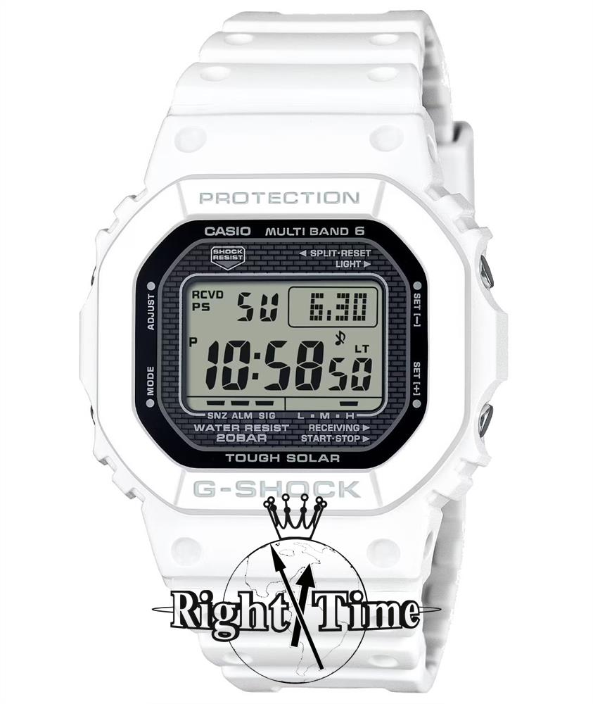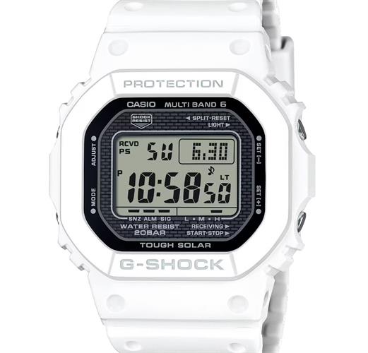 Casio G-shock 5000 SERIES model GW5000H-7. Black DLC (diamond-like) coated stainless steel case with white bio-based resin and band. Watch features: Radio-controlled; Multi band 6; Tough Solar (Solar powered); World time; Stopwatch; Timer; Alarm; Calendar; Energy saving feature; etc...