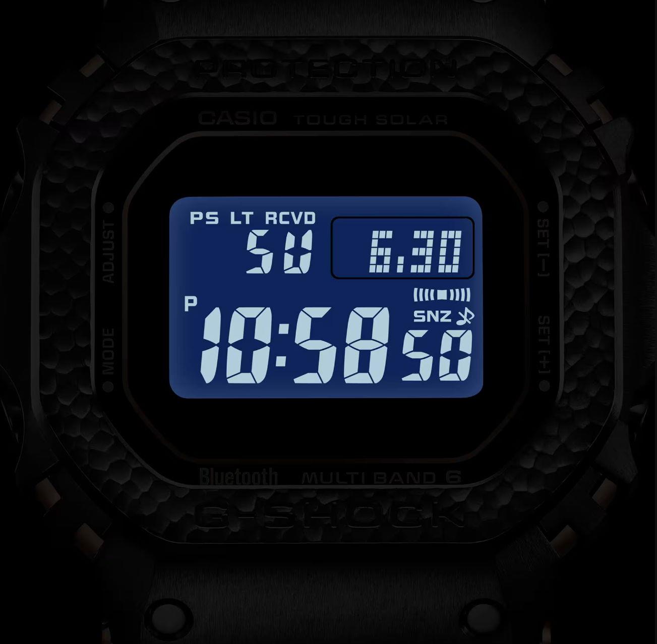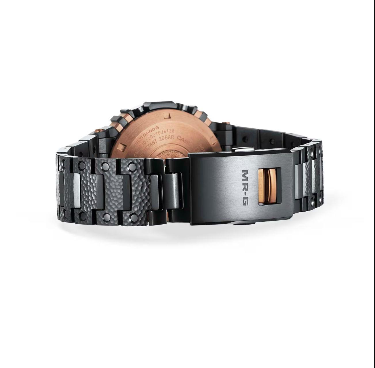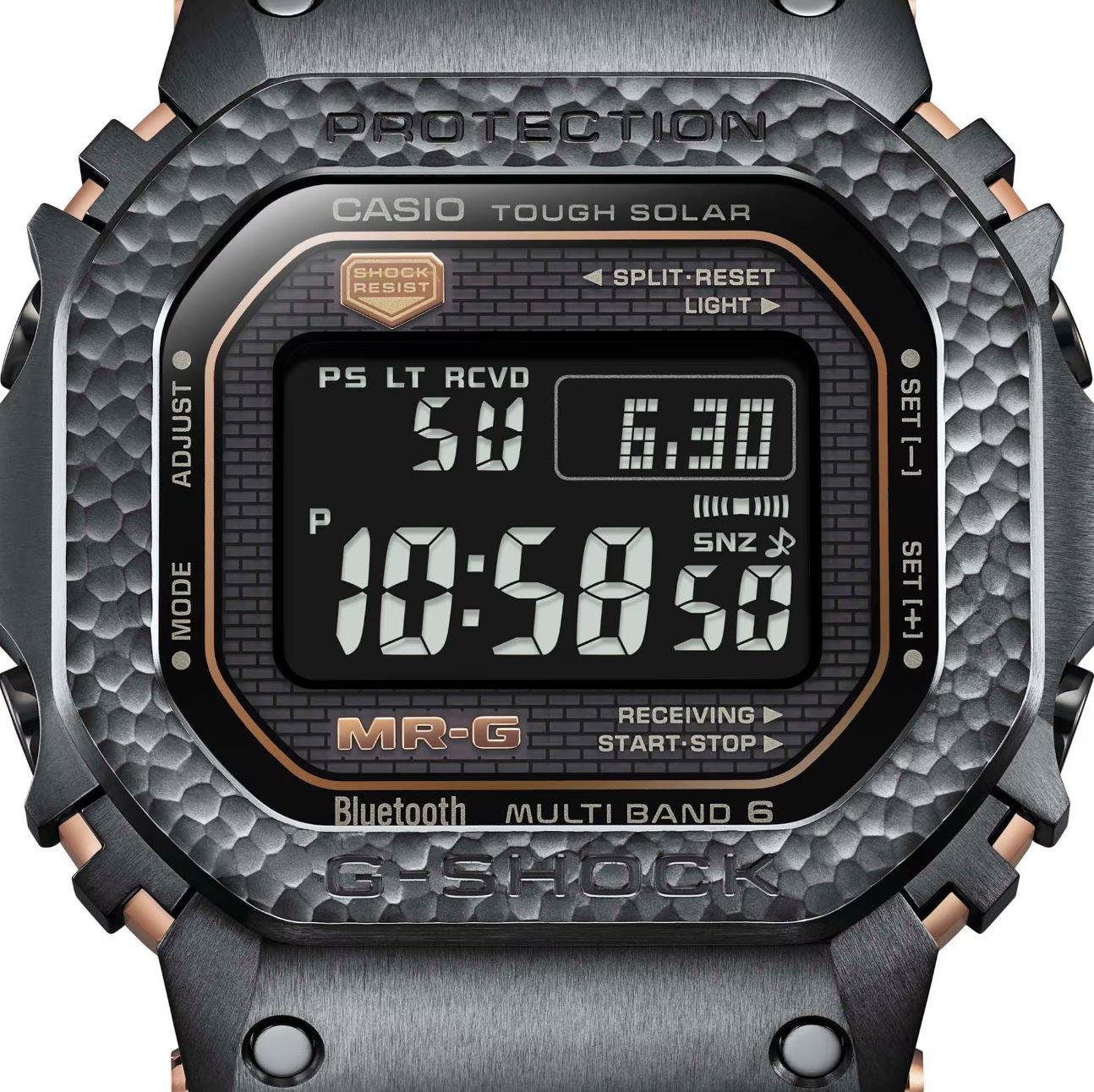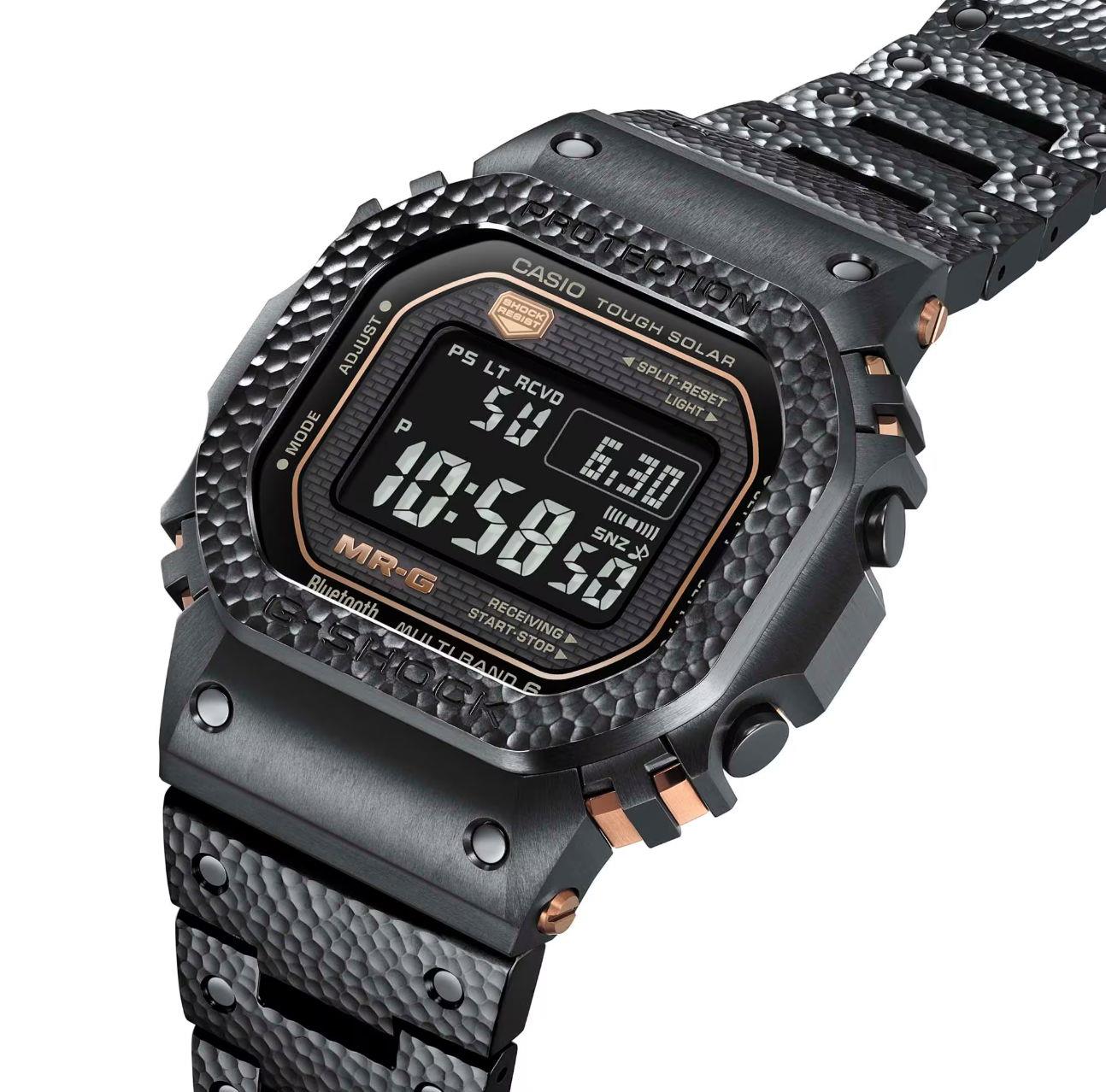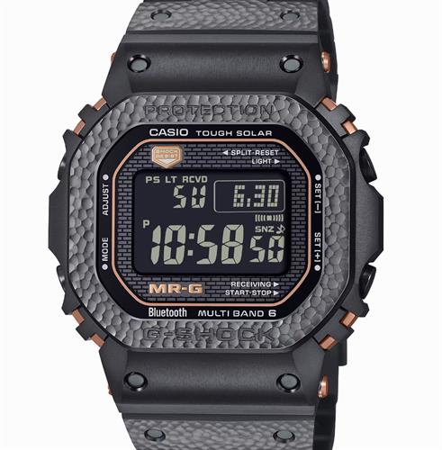 Casio G-Shock MR-G model MRGB5000HT-1. Limited edition of 500 pieces. Each timepiece features a bezel and bracelet that are individually hand-hammered in a unique relief pattern by a master of the traditional tsuiki hammering technique - artisan Kazuya Watanabe.